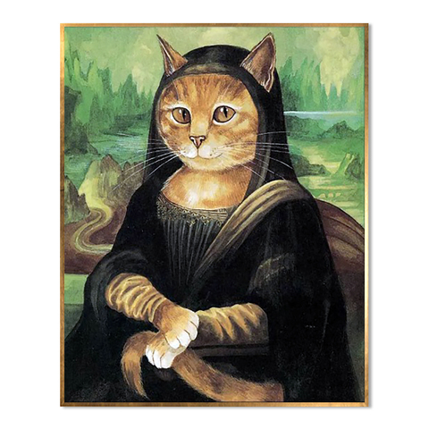 Elegante pintura al óleo abstracta de lujo hecha a mano retrato de gato Mona Lisa tela negra retratos de animales regordetes para lienzo decorativo
