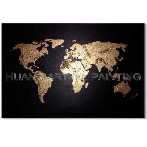 Moderno dorado abstracto mundo mapa paisaje pintura al óleo lienzo pared arte alta calidad pintado a mano para decoración para sala de estar