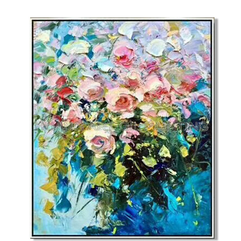 Pintura al óleo de flores 3D moderna, lienzo, diseño encantador, pintado a mano, hermoso cuchillo colorido, rosa para decoración del hogar