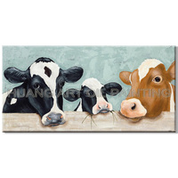 Peinture à l'huile drôle de vaches d'animaux peinte à la main par l'artiste 3 conception de famille de vache pour le salon toile conçue drôle