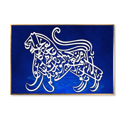 Haute qualité abstrait bleu Lion peinture à l'huile toile peinte à la main par un artiste chinois pour la décoration intérieure Islam calligraphie Lion toile