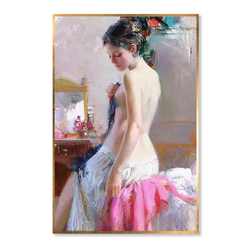 Pintura a óleo artesanal Mulher nua bonita com impressão Sexy Retrato Wall Decor Imagem para Home Canvas Suporte Base