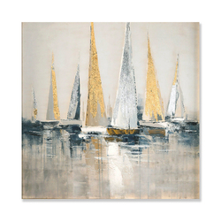 Alta qualidade ouro prata veleiro pintura a óleo bela paisagem pintados à mão para decoração do quarto lona suporte base