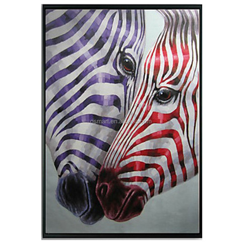 Preço barato pintura a óleo de zebra colorida feita à mão em tela de qualidade para museu duas zebras inclinadas juntas imagem de parede animal