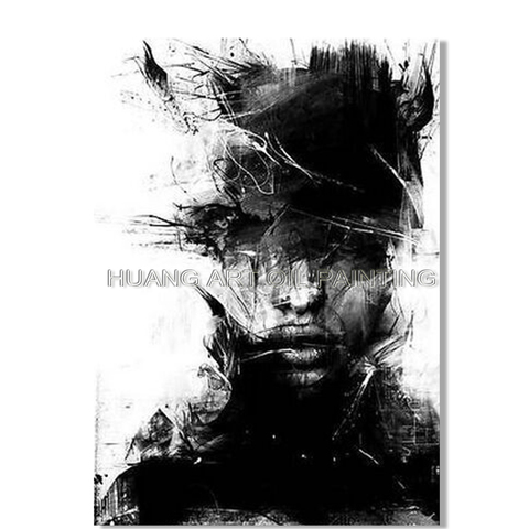 Custom-Size Moderno Abstrato Homem Face Retrato Pintura a Óleo Tela Pintados à Mão Branco Preto Figura Wall Art para Decoração Sala de estar